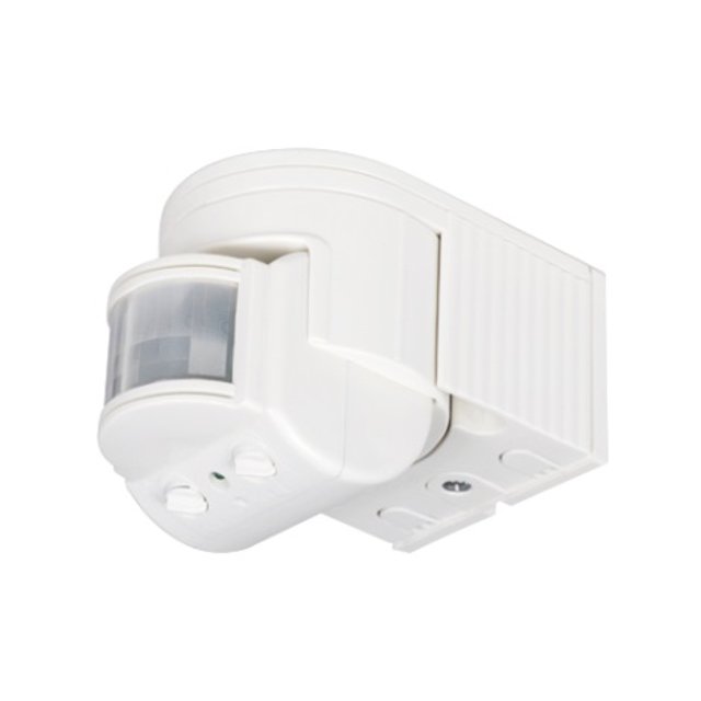 Sensor con detección de movimiento infrarrojo de 180º. Distancia de hasta 12 metros. De tiempo regulable, resistente al agua. Ideal para conectar Luces como medida de seguridad